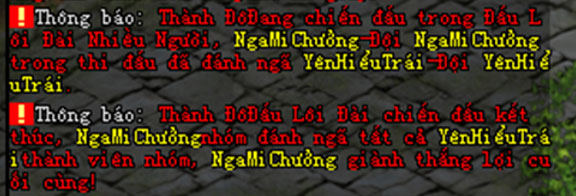 - Thắng thua: Thông qua thông báo của hệ thống ghi nhận.