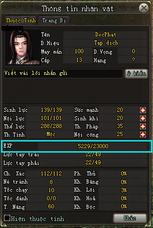 Điểm kinh nghiệm dùng để lên cấp, một khi đã đạt đủ điểm, bạn sẽ được thăng lên một cấp.