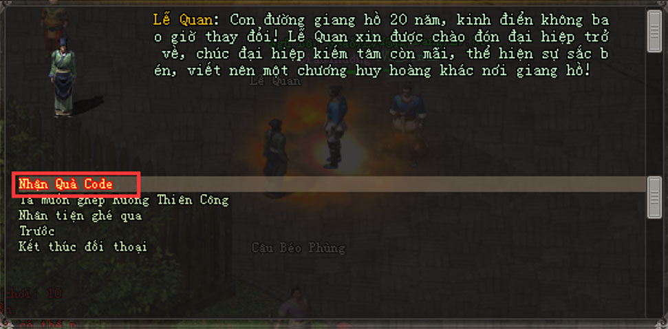 - NPC Nhập Code: Lễ Quan tại các thành thị, thôn trấn.