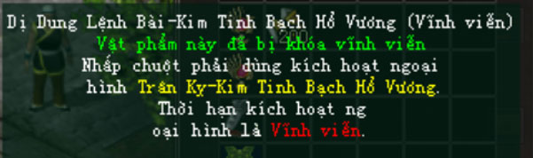 Dị Dung Lệnh Bài-Kim Tinh Bạch Hổ Vương (Vĩnh viễn) | 1 | 7 ngày |