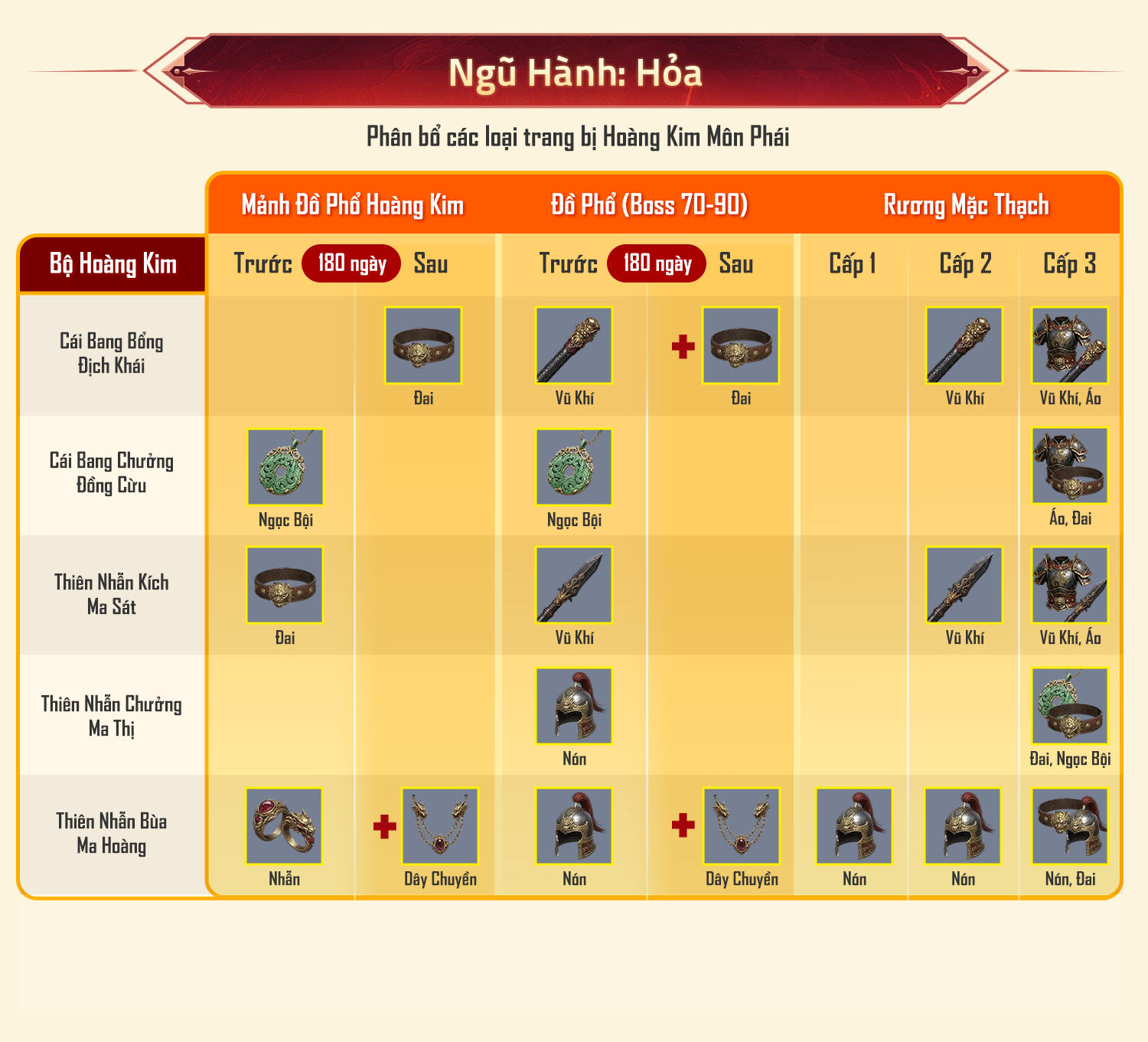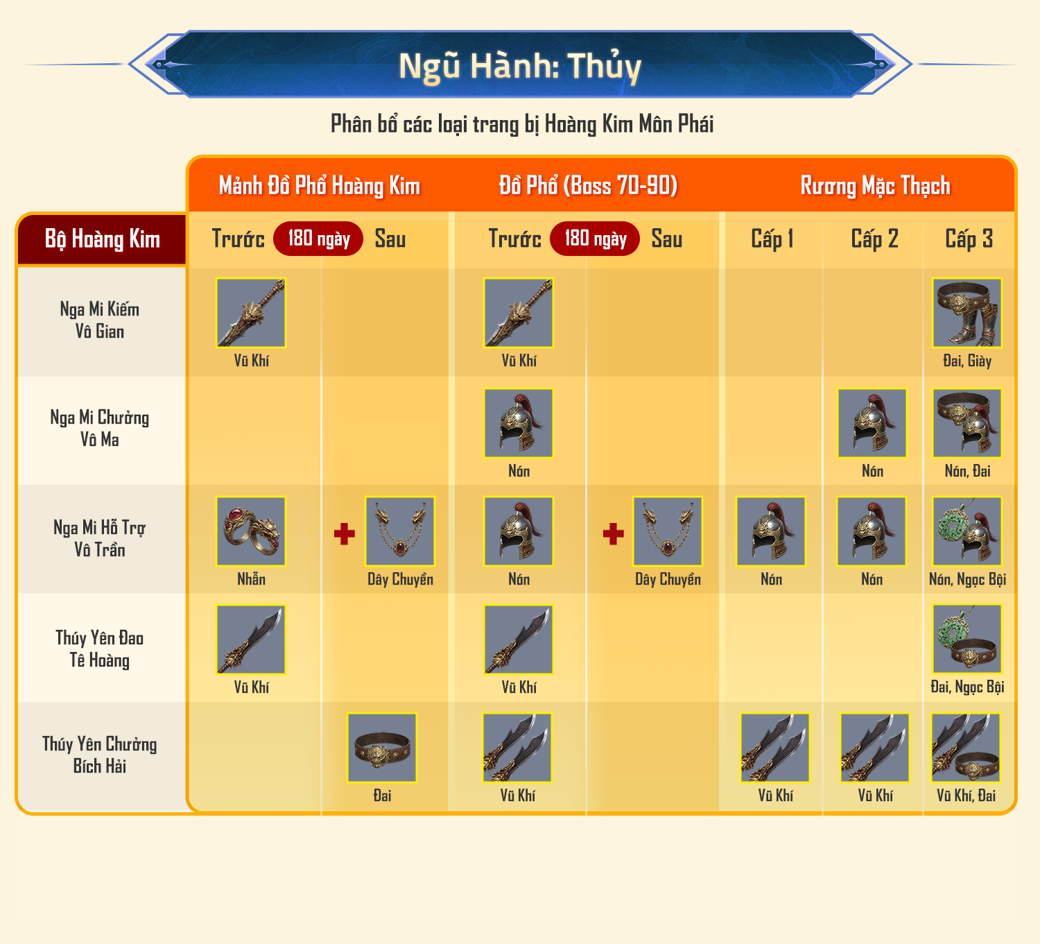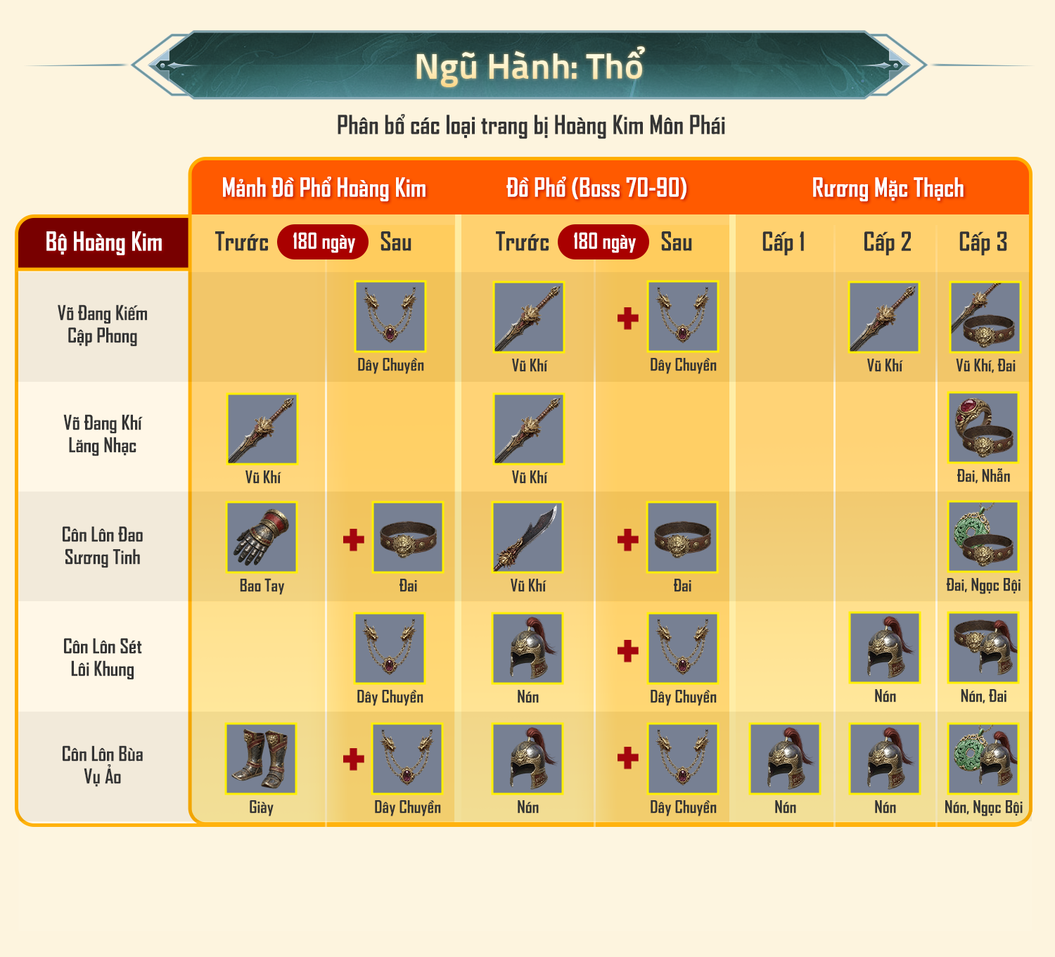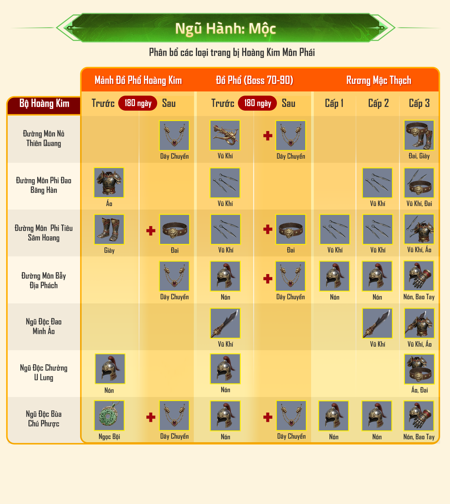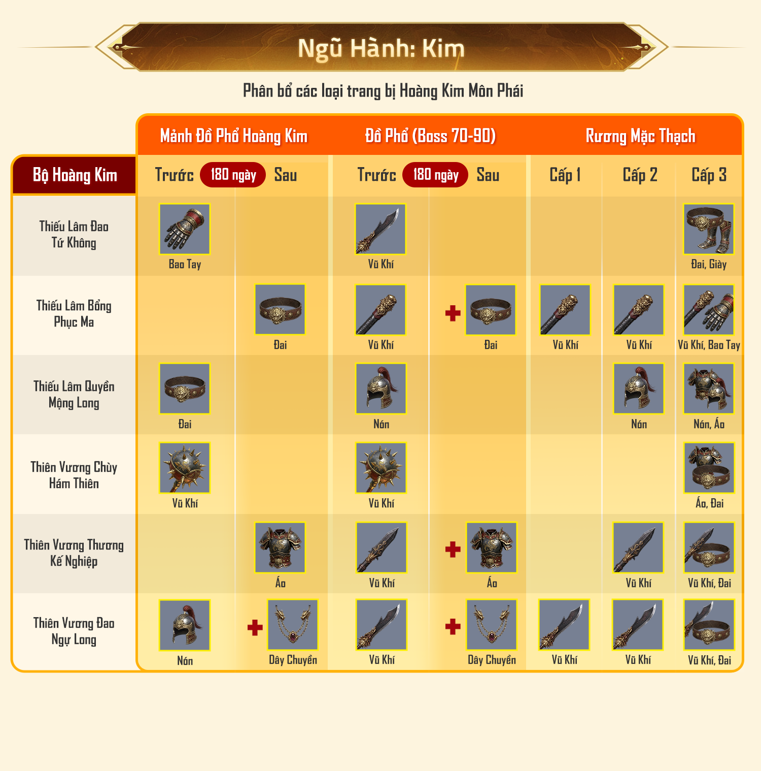 - Rương Mặc Thạch cấp 3: Ra trang bị Hoàng Kim Môn Phái.