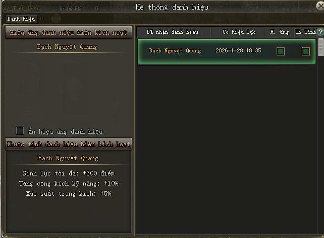 - Khi kết thúc sự kiện, người có số lượng dùng Hoa Hồng Vĩnh Cửu nhiều nhất máy chủ sẽ nhận được danh hiệu giới hạn Bạch Nguyệt Quang → có thuộc tính & hạn dùng 3 tháng.