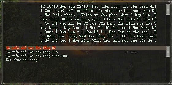 - Nhân vật có thể dùng 999 Hoa Hồng Tím và 100 vạn để đổi Hoa Hồng Vĩnh Cửu tại NPC Long Nhi.