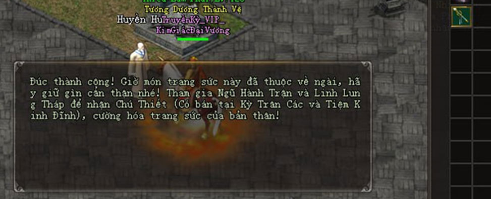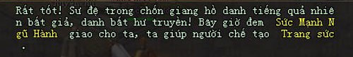 - Bước 7: Đến Dương Châu tìm Thợ Rèn Học Việc khảm Văn Sức vào Trang Sức. Hoàn thành trở về NPC giúp đỡ của môn phái nhận thưởng.