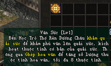 - 2 Văn Sức bất kỳ có thể ghép với nhau để tăng số dòng thuộc tính ngẫu nhiên. Ví dụ: Văn Sức A + Văn Sức B + 30 Vạn lượng -> Văn Sức ngẫu nhiên.