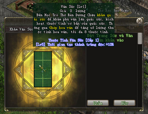- Khảm Văn Sức: Không tiêu hao ngân lượng.