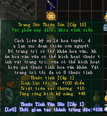 - Cấp thuộc tính: thuộc tính có cấp, cấp Văn Sức quyết định cấp của thuộc tính.