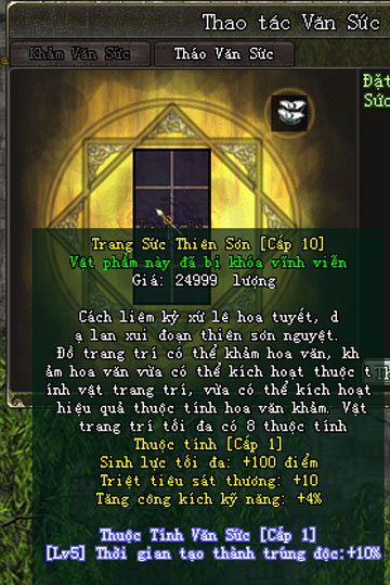 - Trang Sức chưa khảm Văn Sức sử dụng sẽ không kích hoạt 3 thuộc tính của Trang Sức.