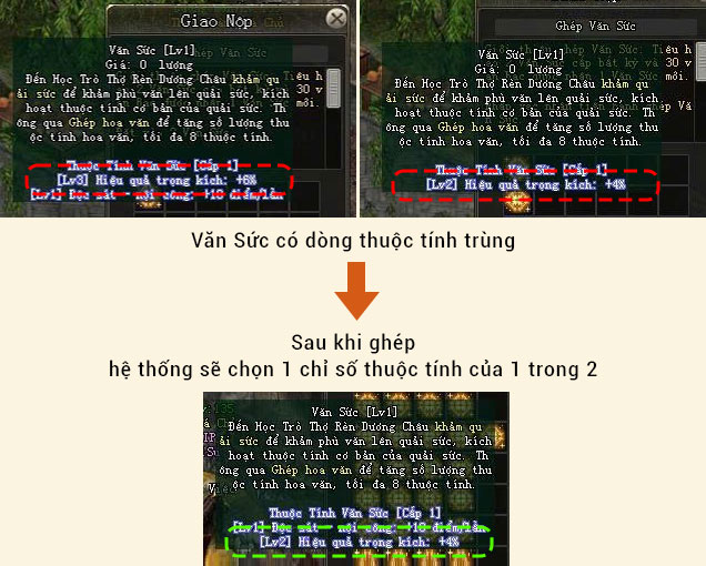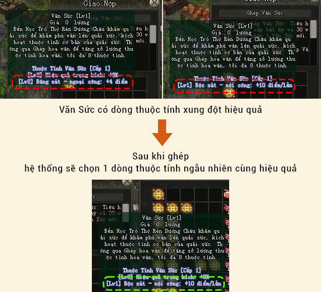 - Văn Sức được tạo ra sẽ có thuộc tính ngẫu nhiên 1 – 3 dòng chia theo cấp.